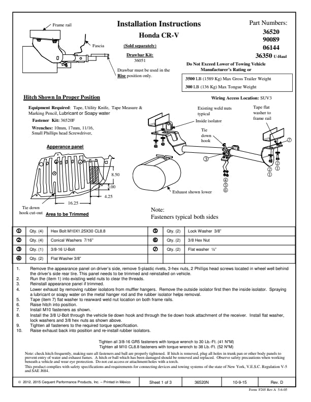 | Gross Trailer Weight (lbs.) |