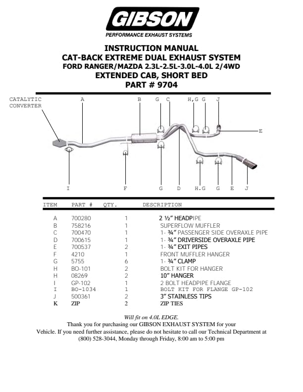 For the extremist who wants to take their truck to the next level, this dual bolt-on Cat back system is for you. This system exists behind the rear tires at an aggressive angle with a powerful exhaust tone. You will gain bold street looks with powerful dyno tuned and tested street performance gains. You can expect to experience gains on average of 15-20 horsepower. Gibson muffler provides a mean performance sound and complemented with polished Stainless Tip. Easy bolt-on installation. No welding required. Backed by a Lifetime Limited Warranty. If you want Extreme, this system is it.
