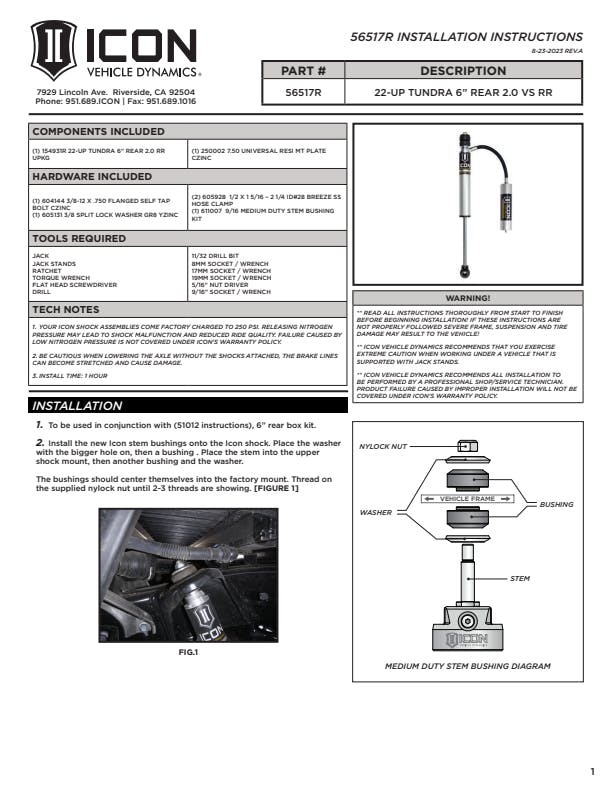 ICON VS 2.0 Aluminum Series shocks are a high-quality upgrade for the everyday street driver and weekend warrior looking for improved on and off-road performance. Shocks are vehicle specific, 100% rebuildable, and 100% revalveable.