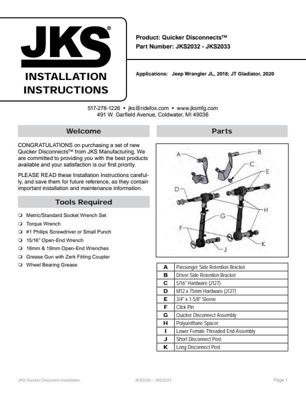 Upgrade the suspension on your Jeep Wrangler JL or Gladiator JT by installing Quicker Disconnect adjustable Sway Bar Links. Easily disconnect your sway bars when you hit the trail and need additional articulation. JKS Quicker Disconnect Sway Bar End Links improve off road articulation on Gladiator JT and Wrangler JL Jeeps without sacrificing on-road handling. Quick-release pins make it easy to decouple and reconnect your front sway bar. The adjustable design attaches to your sway bar and axle housing. Fits 0 to 2 lifts and is sold in pairs, Quicker Disconnects are powder coated and Made in the USA. You won't find a more user-friendly or higher quality design for your JK or JL Jeep.