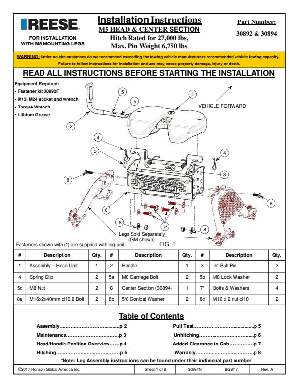 Fifth Wheel Hitch; M5 27K Fifth Wheel;