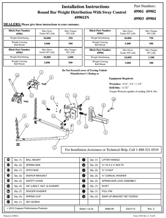 The innovative Pro Series(TM) Complete Round Bar weight distribution is engineered to provide the features you expect in a weight distribution kit at an economical price. Provides everything needed to improve towing, safety and performance right out of the boxPreinstalled and torqued sway control ball and 2-5/16" hitch ball, u-bolts and chainsFabricated head and welded hitch barIncludes friction sway control and mounting hardware10 year limited warranty