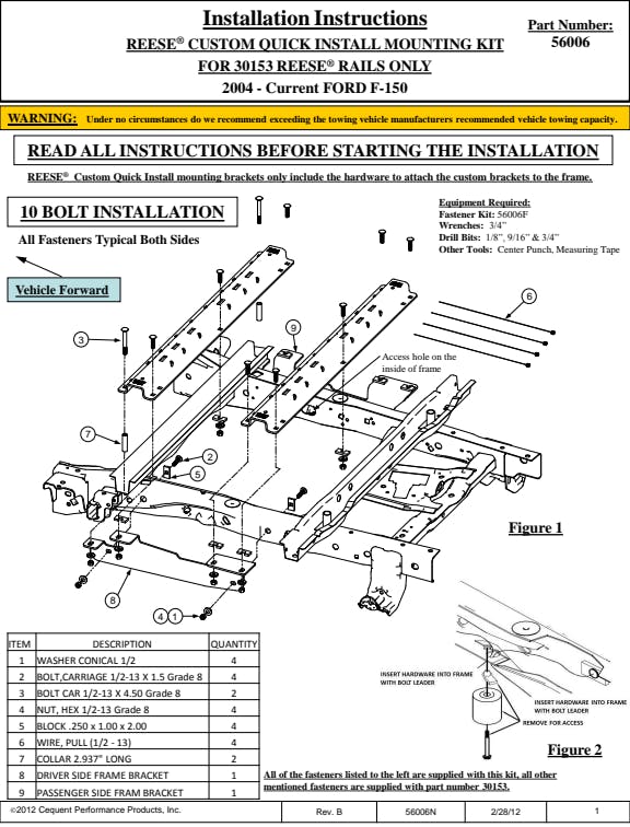 Vehicle specific Reese Outoard Fifth Wheel Custom Quick Install Brackets availableKits also available that include Reese Outboard Fifth Wheel Mounting Rails and Vehicle Specific Brackets