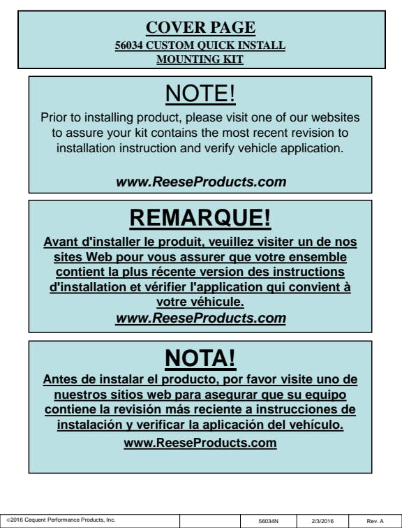 Vehicle specific Reese Outoard Fifth Wheel Custom Quick Install Brackets availableKits also available that include Reese Outboard Fifth Wheel Mounting Rails and Vehicle Specific Brackets