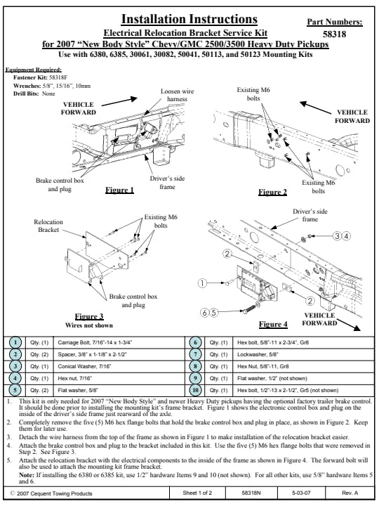 Bracket relocation kit for 2007 & Newer Chevy/GMC 2500/3500HD pick-upsBracket relocates the OEM optional factory brake control to aid in installing Gooseneck frame brackets