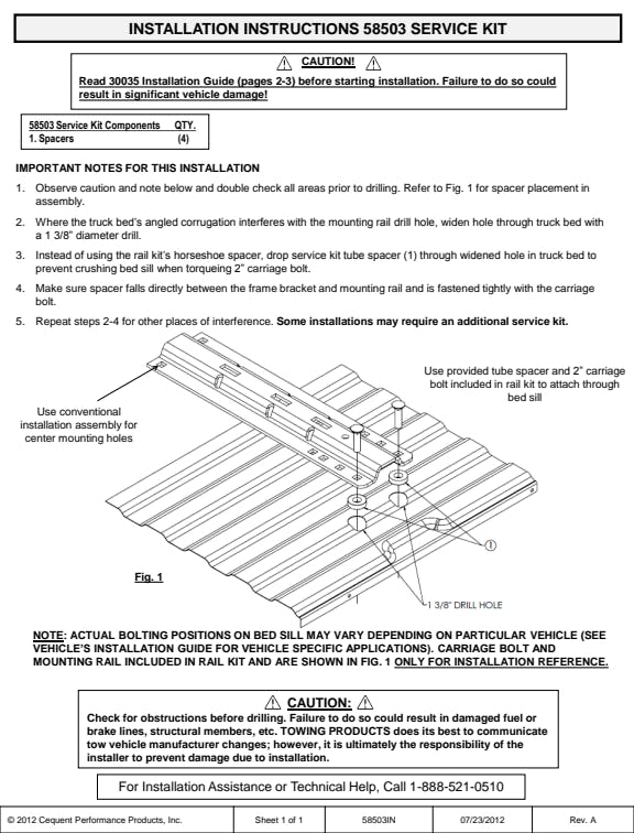 - Fifth Wheel Mounting Rails Accessory Corrugation Spacer Kit