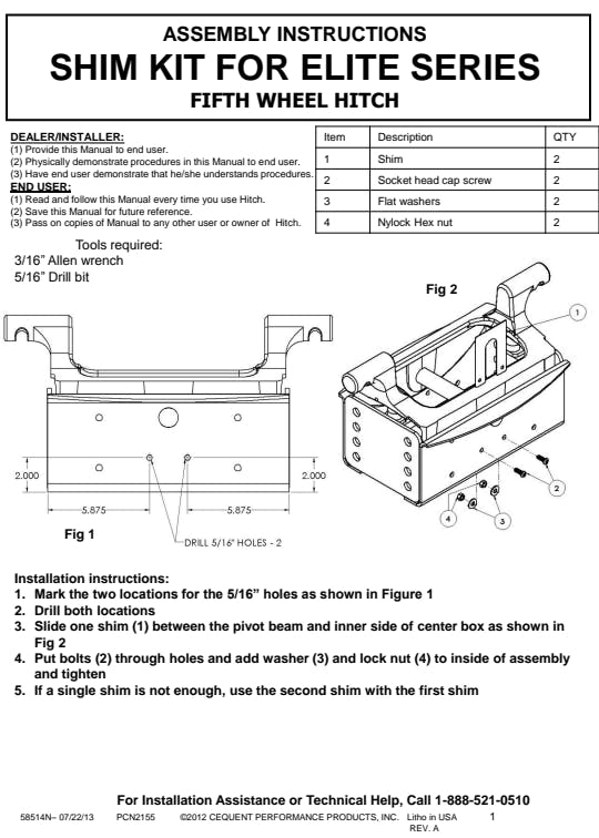 - Shim Kit For Elite Series Center Sections
