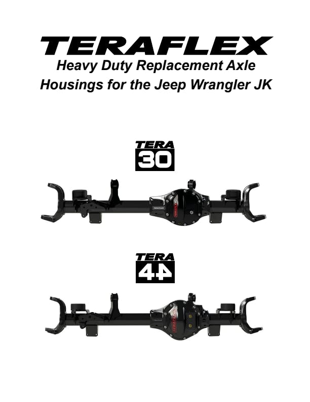 TeraFlex HD Front Axle Housings are perfect for replacing bent, broken, or damaged axles in JK Wrangler/Unlimited vehicles including Rubicon models. Can also be used as a direct bolt-on upgrade for Jeep owners looking to beef up the stock axles? weak areas. Our Bare HD Front Axle Housings feature a heavy-duty housing with axle tubes, bracketry, and forged inner knuckles as well as pre-installed inner seals and upper control arm bushings. Stepping up to our Tera44 HD Front Axle Housing w/ Ring & Pinion & ARB Locker provides a choice of pre-installed ring and pinon gears, ARB air locker, and TeraFlex HD Ball Joints. Transfer your outer stub shafts, outer knuckles, and outer axle assembly (unit bearings, brakes, sensors) to make a complete axle assembly. Requires new inner axle shafts.