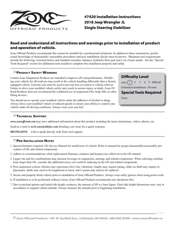 While many vehicles come equipped from the factory with a steering stabilizer, the small cylinder isn't up to the task of controlling oversized tires. Zone Offroad offers upgraded steering stabilizer options to enhance vehicle control by reducing steering shimmy and bump steer. These quality systems are designed to improve tire wear and front end component life as well as lessen side to side motion caused by wide tires and unpredictable road conditions.