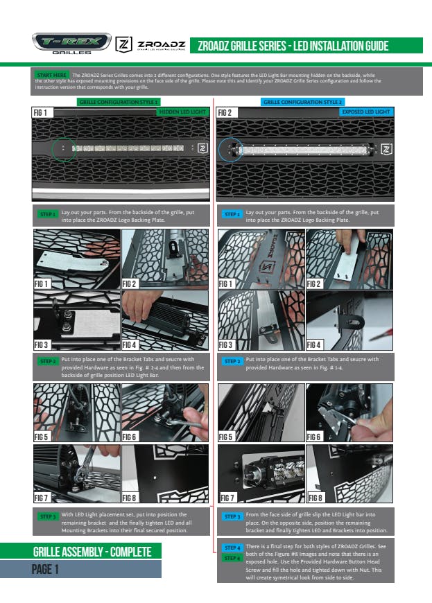 This slim line LED Grille design features an attractive custom laser cut pattern that encloses a powerful single row compact LED light bar, 1-piece laser cut construction and inspired by off road rugged styling. The main objective was to offer a complete package grille that includes a built-in ZROADZ high output LED light bar at an unbeatable price. We use several different materials throughout the design process. Our uncompromising quality begins with advanced 3D CAD supported engineering and design. All our products undergo rigorous testing for fit, finish, drivability and durability. Each part starts with a custom jig using laser cut materials, precision TIG welding and meticulous assembly and quality control. This dedication of American craftsmanship shows in every product that leaves our facility in California. All our black powder coated grilles go through a multi-stage process, first they are sandblasted to prepare the surface for our epoxy primer base coat. Second, they are cleaned to remove contaminants from the sandblast process. Then an epoxy primer base coat is applied and cured to seal the entire surface, finally the color top coat is applied over the primer and cured to provide long lasting protection and a high-quality OEM finish.